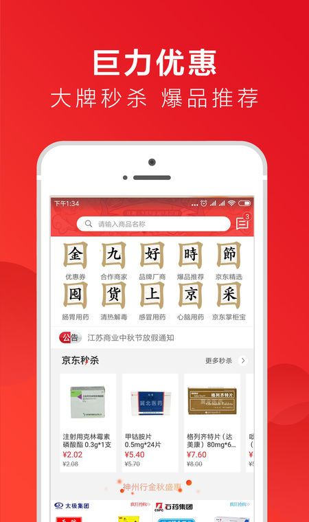 药京采旨在通过互联网、移动互联网,连接医药工业企业、商业企业、零售企业、医疗机构,建立高效、便捷、品类齐全的一站式医药采购平台。
