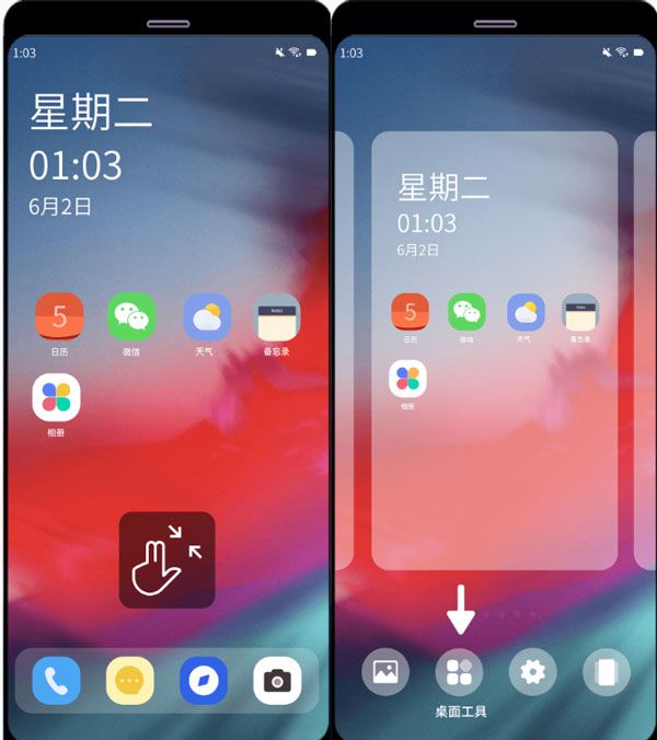 不同品牌手机名称可能略有差别,例如:窗口小工具\插件\桌面挂件\添加工具,请根据实际情况选择。