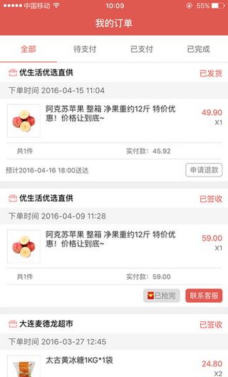 此外优生活还一只配送服务生团队为顾客提供当日送达及最快一小时送货到家服务。