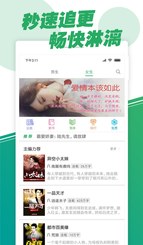 1、海量书库:精选百万部小说,言情穿越奇幻武侠一网打尽;