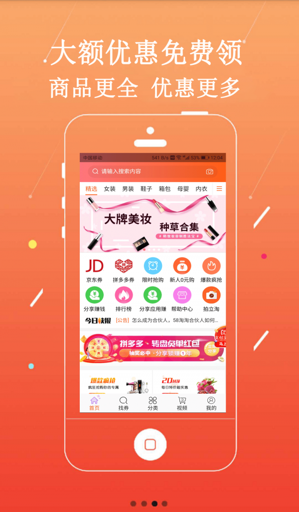 海量低价优惠商品供你选择,想买的都能省。邀请好友一起拿券儿,他购物,您赚钱。如果他也成为合伙人,他推广的收益您也有分成哦。自买可省钱,分享可赚钱。