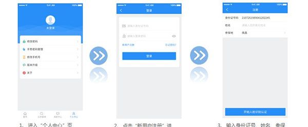 2、点击APP右下角的“个人中心”,点击未登录的头像,随后点击登录界面左下方的“新用户注册”,按照程序输入相应信息后,就会进入“人脸识别”环节。