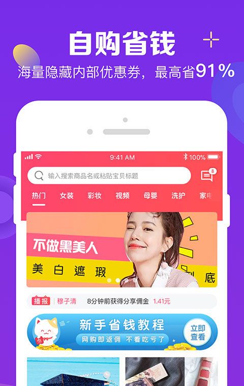 1、自购省钱:海量隐藏内部优惠券,最高省91%。
