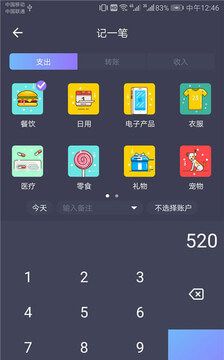 记账备注,在输入消费金额时可以添加自己的备注;