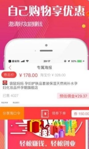 4、内嵌手机淘宝模块,一键免费领取优惠券并跳转至手机淘宝对应商品下单。下单时自动使用内部优惠券。所有已购买订单在淘宝、支付宝APP中均可查询订单详情。