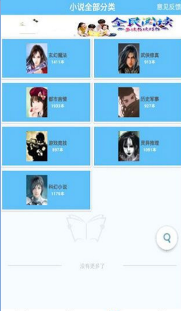 6、上面还会有很多小说主题的分类,用户可以根据分类来选择自己喜欢的小说内容。