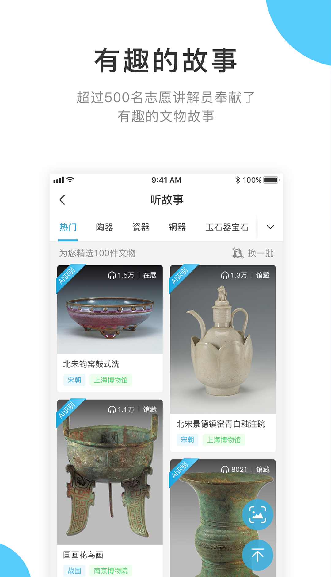 当您参观博物馆时,只需要拿出打开超级博物馆,扫一扫即可自动识别文物,了解文物故事。
