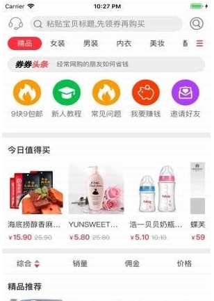 首页每日更新包括9.9包邮、全网精选爆款、高额返利商品等专区,让你省钱同时轻松赚零花。