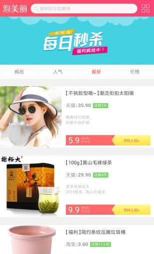 《泡美丽》是一款拥有大量爆款优选商品的移动购物平台,主要为广大消费者用户打造一个舒心、便捷、高效的购物体系,让消费者能够体验网上购物的乐趣,改善自己的生活方式以及享受便利的购物生活。这里整合了大量的优惠精选商品,所有的商品都是来自各大知名网购平台,同时每款商品的封面都拥有相应的优惠券信息,无需点击进入主页就能查看,选择商品更方便;同时你还可以进入搜券主界面,复制粘贴商品的标题名称点击搜索查询即可,相应的优惠券即可快速反馈给你,付款使用优惠券,让你购物更加省钱,赶紧下载吧。