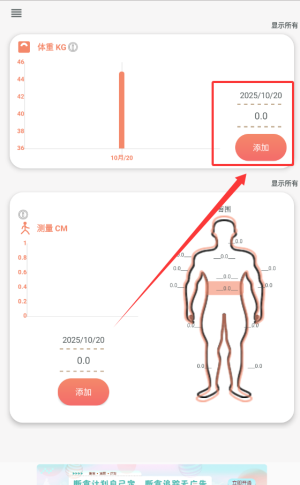 4、体重测量页面输入当前体重数值并提交,系统将自动生成体重变化曲线。