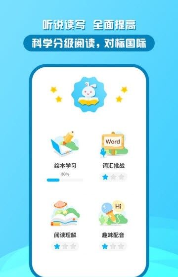 3、全新学习方式,通过挑战练习,趣味配音,创造属于自己的配音绘本,提高口语能力,增强学习兴趣。