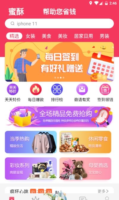2、每天限时抢购活动每天九点准时开抢优惠商品。