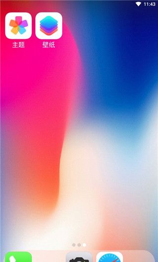 3、之后就可以完全体验苹果手机的桌面是什么样的了,要是觉得好用直接选择成为默认桌面,以后不用打开app就可以使用了。在桌面上打开到【主题】和【壁纸】就可以体验海量的iPhone主题样式了。