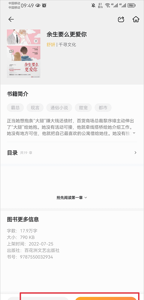2、点击进入书籍详情界面,你可以直接点击免费阅读或者加入书架。