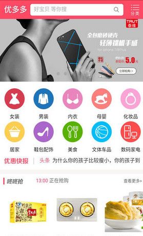 3、优多多每天发布上万款1-5折淘宝、天猫品牌商品优惠券。