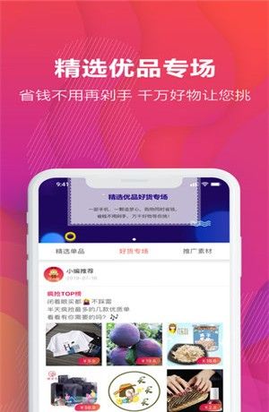 花小蜜可以在app中尽情的挑选,让用户能够省时又省钱,华最低的价格,购买最好的货;在这里,拥有最贴心的服务,最好的货源,提供最优质的货物,集合了目前各大平台商品类目实时推荐更新上万优惠特价促销商品,减少您购物的性价比时间,让您可以得到最新的优惠促销价格。