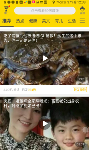 2、观看视频文章,奇闻异事、娱乐八卦、健康生活、搞笑段子应有尽有。