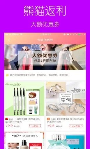 2、熊猫返利每天为您搜索各大电商平台内部优惠券。