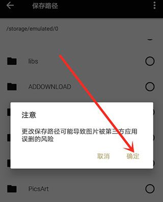 6、如果想更改保存路径的话点击”路径的文件夹“同时弹出注意的对话框中点击”确定“选项;