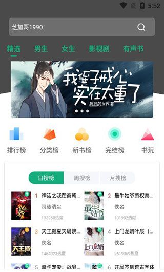 4、小说热门排行榜:连阅小说软件为用户提供了非常实用的小说热门排行榜,让用户实时了解最热门的作品,了解小说动态。