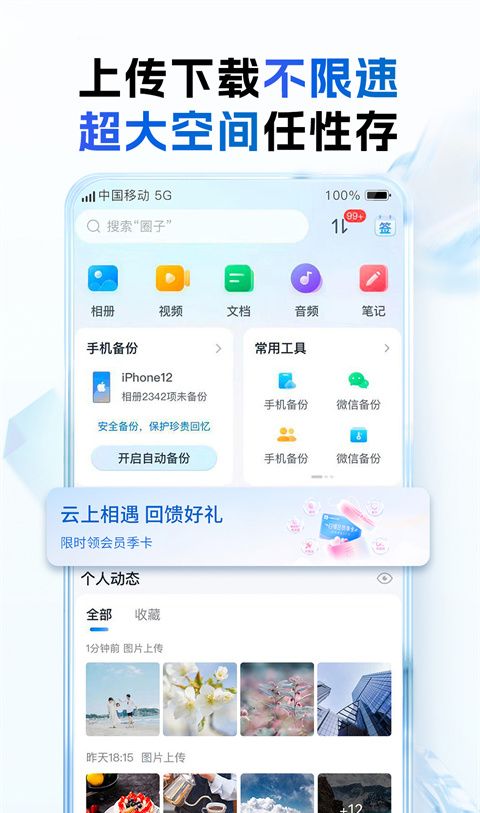 1、快速上传和下载:和彩云网盘承诺提供无限的服务体验。无论是上传还是下载文件,用户都可以享受高速稳定的网络连接,大大提高了数据传输的效率。