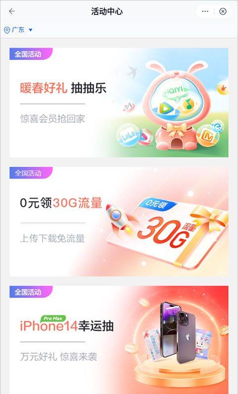 2、进到页面可以看到有很多活动,你可以点击“0元领30g流量”领取流量,除了这个很多其他的流量活动可以参与领取。