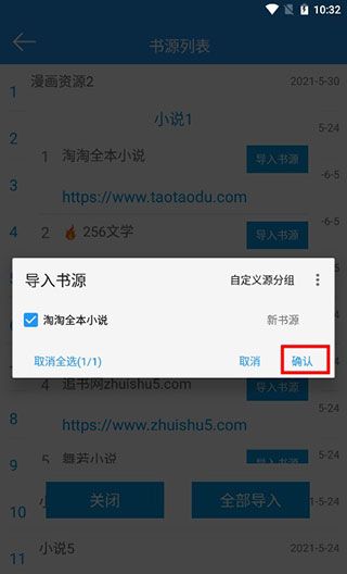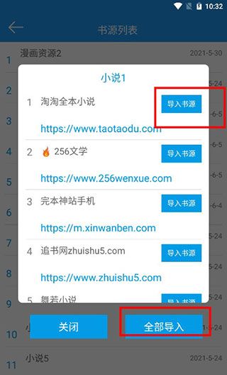 3、选择书源列表任意一个书源集合,或者点击全部导入