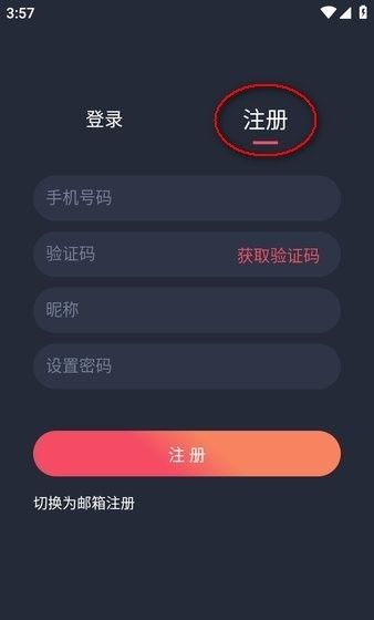 进入登录界面,要切换到右侧的“注册”,默认是手机号注册,左下角可以“切换到邮箱注册”。