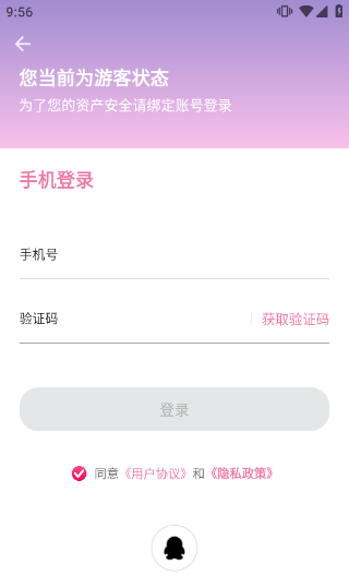 2、使用qq或手机号码验证即可快速注册并登录app