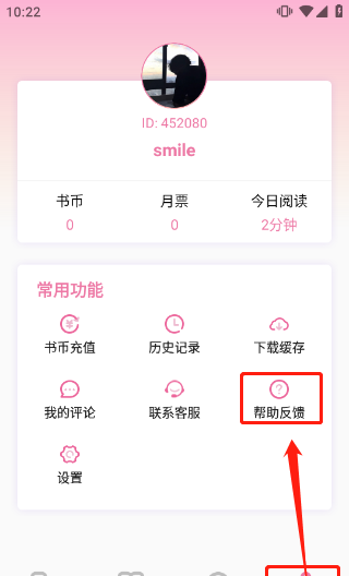 3、登录账号后点击“我的”-“帮助反馈”
