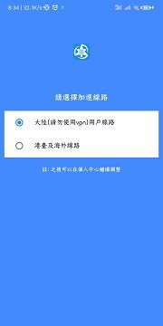 2、进入页面,选择加速线路,app默认是大陆用户线路