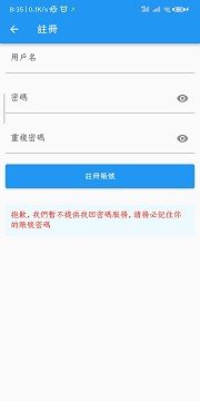 注意:软件暂不提供找回密码服务,用户需要牢记你的密码账号