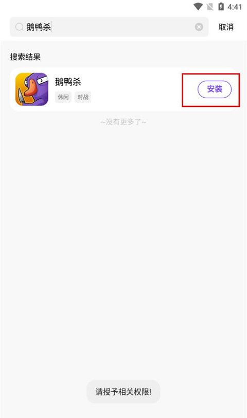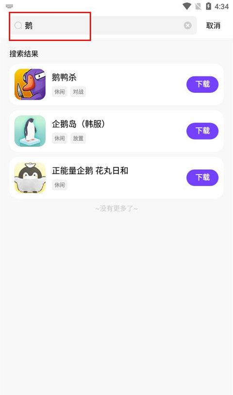 3、亦或者点击上方的搜索框,然后文字输入要下载的游戏,如“鹅鸭杀”