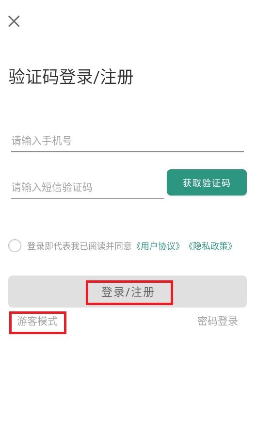 2、进入之后输入信息点击登录/注册,不想注册的话就点击游客模式;