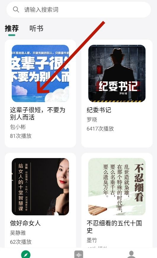 2、根据用户的阅读偏好和历史记录,甘草好听智能推荐符合用户口味的音频内容,提升用户的阅读体验,很多精品的好书这里都有。