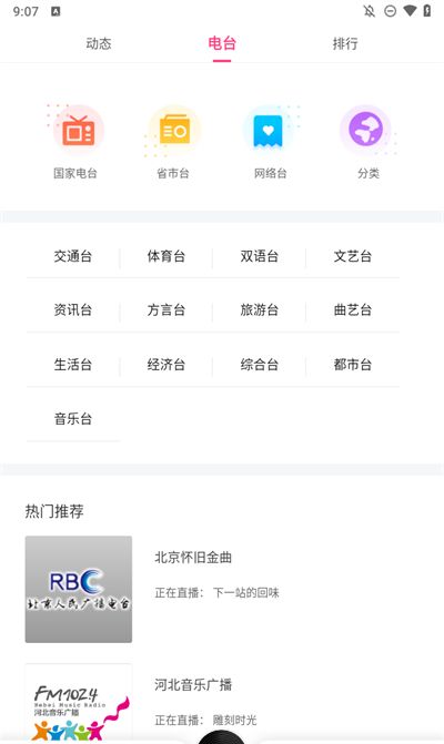 5、点击电台选项能够查看近期热门的电台频道,更多优质的电台资源内容能够在里面获取。
