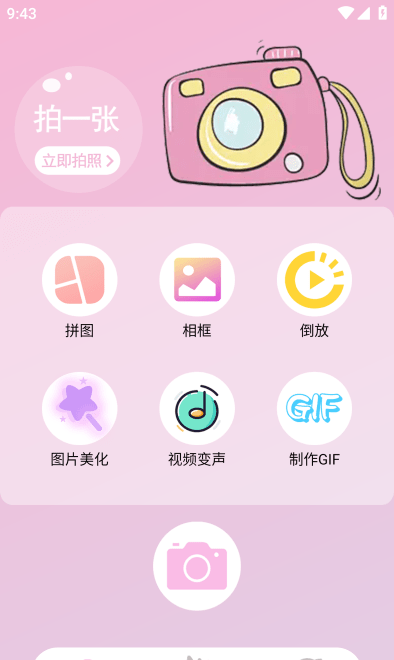 然后你可以看到很多的功能,拼图、相框、倒放、图片美化、视频变声、制作gif等。