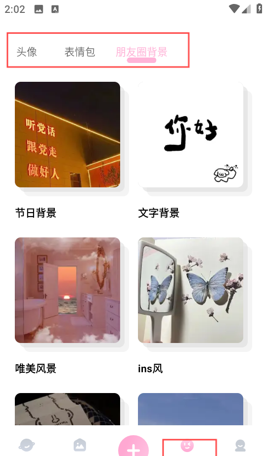 5、切换到“头像表情”部分,那里有大量适合在朋友圈发布的头像材料、表情符号和背景图片等着你去探索。