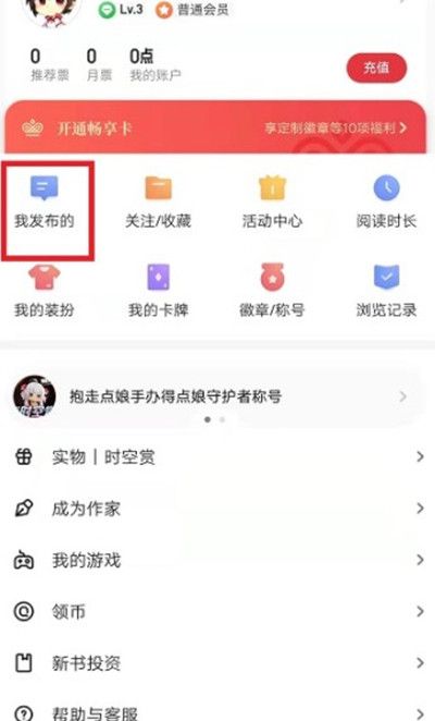 1.首先打开旗芬小说中的【个人中心】,点击【我发布的】。