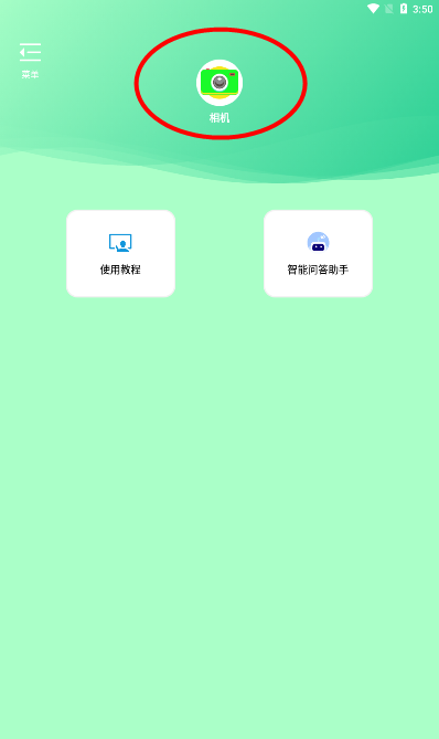 1、打开绿幕相机APP,进入主页,点击相机