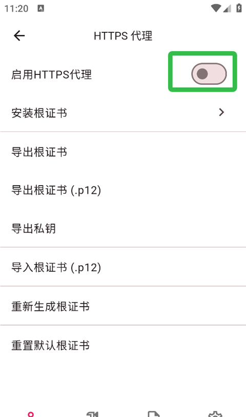 2、启动【启用HTTPS代理】开关。
