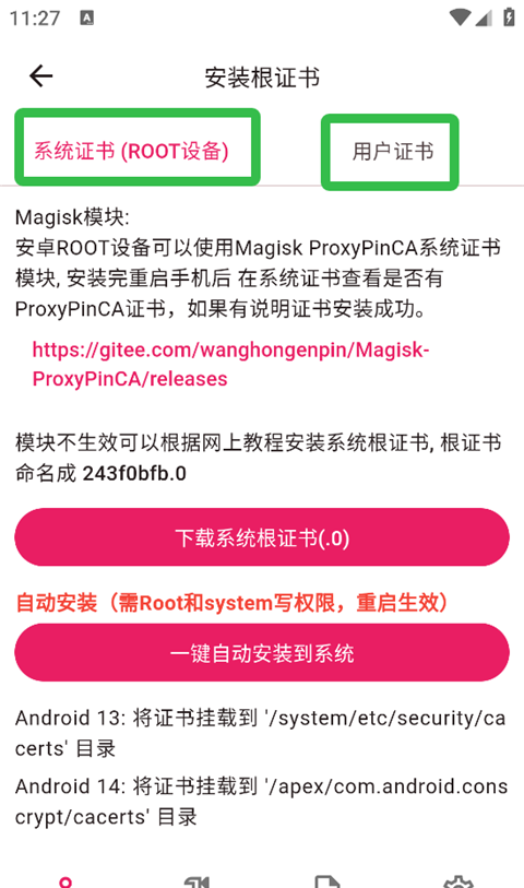 3、然后点击【安装根证书】。
