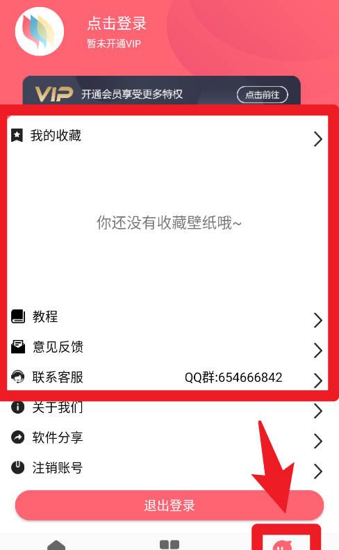 5、我的页面展示用户收藏的壁纸,并提供教程、意见反馈、联系客服和账号管理等功能,方便进行个性化设置与管理。