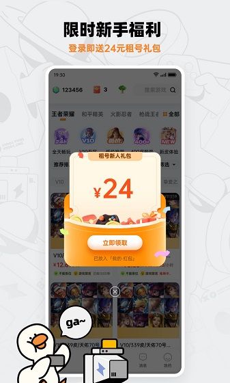 租号宝是一款专业高端的游戏租号平台,王者荣耀、和平精英账号、火影忍者等热门游戏的精品账号超级多,高端、优质的游戏账号随时租。软件里绝版皮肤、V8大神级等游戏账号任你挑,快速上号安全保障,自动登录省时又省力,专业客服解决问题,让玩家畅享游戏乐趣!新用户即送登录大礼包!不到1元即能体验大神号,极品装备带你爽飞。人性化的售后处理,真正做到随走随付费。
