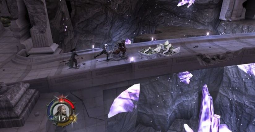 玩家可操控战士、法师、盗贼三大职业角色,通过团队协作应对包括半兽人、红龙、史拉蟾族等20余种经典怪物。战斗系统结合近战连击与魔法释放,支持角色切换组合技,并利用可破坏环境(如落石、爆炸物)制造范围伤害。