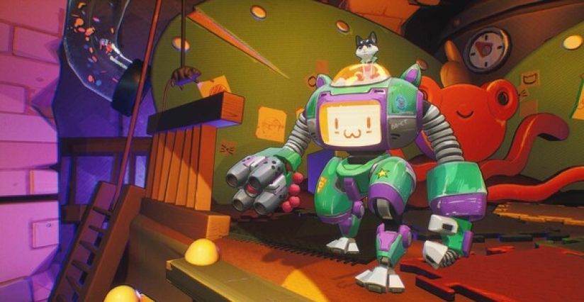 玩家操控装备精良的小猫,目标为突破邪恶公司封锁并击败大量鼠鸟大军敌人,场景包含随机生成的房间序列,需利用地形与技能规划逃脱路线。