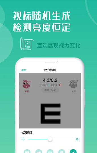 超级视力表是一款专业实用的视力监测软件,由上海品腾信息技术有限公司精心制作。该软件可为用户提供专业的视力检查和结果记录,以及专业的眼保护信息,有助于用户轻松监测视力,及时发现近视情况,养成良好的眼使用习惯。此外,软件界面简洁,操作实用非常简单,检测过程参照国家标准,可自由设置视力表测试模式,检测距离、视标大小、视标数量、屏幕亮度等参数可自由调节。同时,超级视力表的官方版汇聚了大量眼科专家,提供优质的人工支持,帮助用户解决各种问题,是你的好帮手。