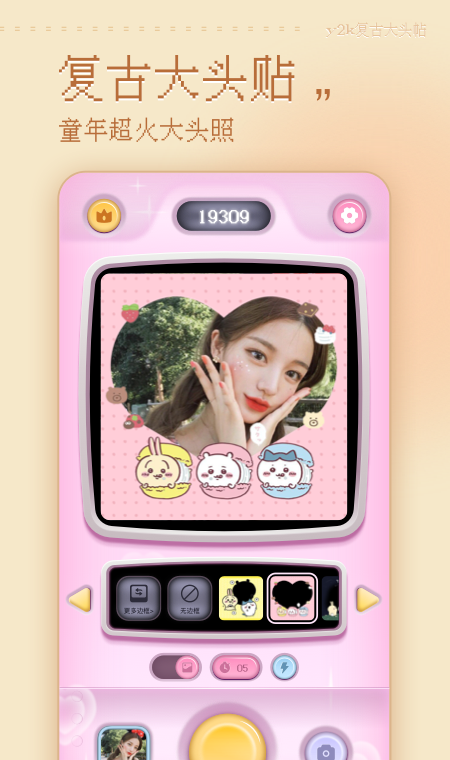 复古大头贴是一款模拟千禧年代大头贴的相机应用,重现了千禧年经典的复古大头贴风格,提供各种贴纸、边框和装饰,使照片看起来更有趣、更具有复古氛围,拍摄大头贴,多种创意大头贴模板,复古风格相机。有大量的自定义表情,各种滤镜和美容功能,魔术表情包,给你不同的新颖照片。支持直接生成大头贴,只需选择照片和相框,即可一键完成制作,并保存或分享给他人。