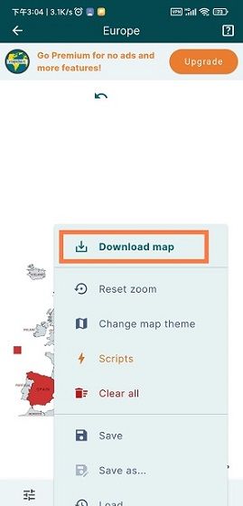 3、然后再弹出的功能条中点击选择“Download map”并给保存的地图进行命名。