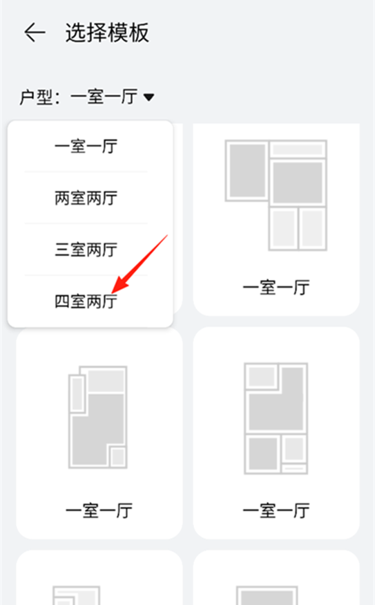 6、点击左上角的“一室一厅”,选择户型。